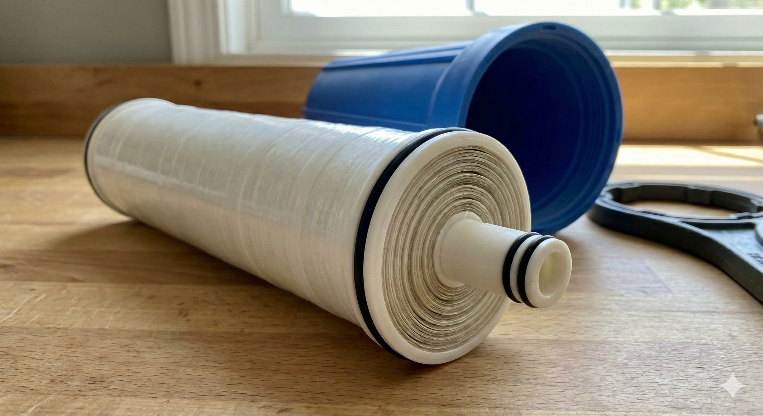 Membran RO bukan sekadar filter biasa; ini adalah “jantung” dari seluruh sistem Reverse Osmosis Anda. Dengan teknologi filtrasi tingkat molekuler yang memiliki kerapatan hingga 0,0001 mikron, membran ini bekerja efektif memisahkan air murni dari kontaminan, bakteri, virus, hingga logam berat terlarut.