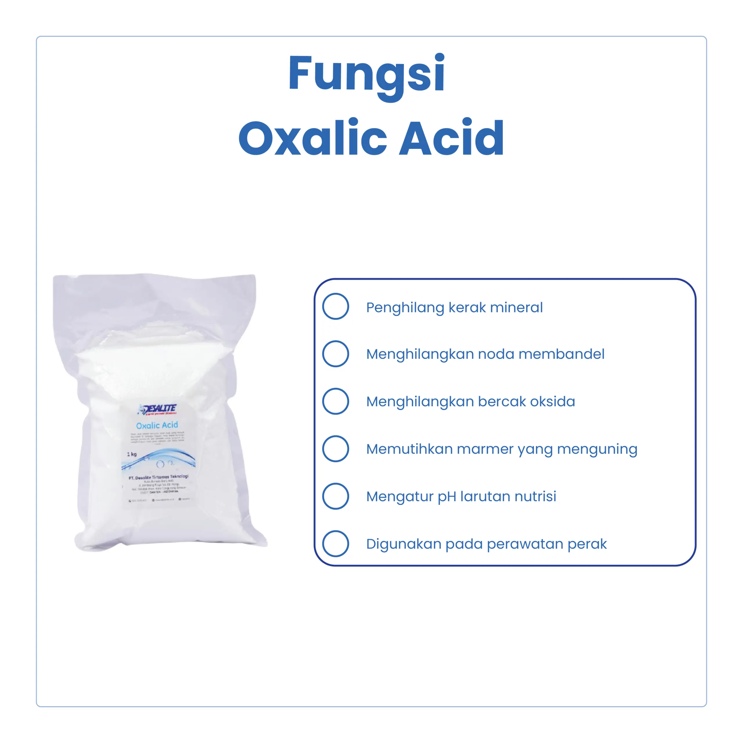 Selain itu, Oxalic Acid juga efektif untuk membersihkan noda karat dan kerak pada permukaan tertentu sesuai kebutuhan teknis.