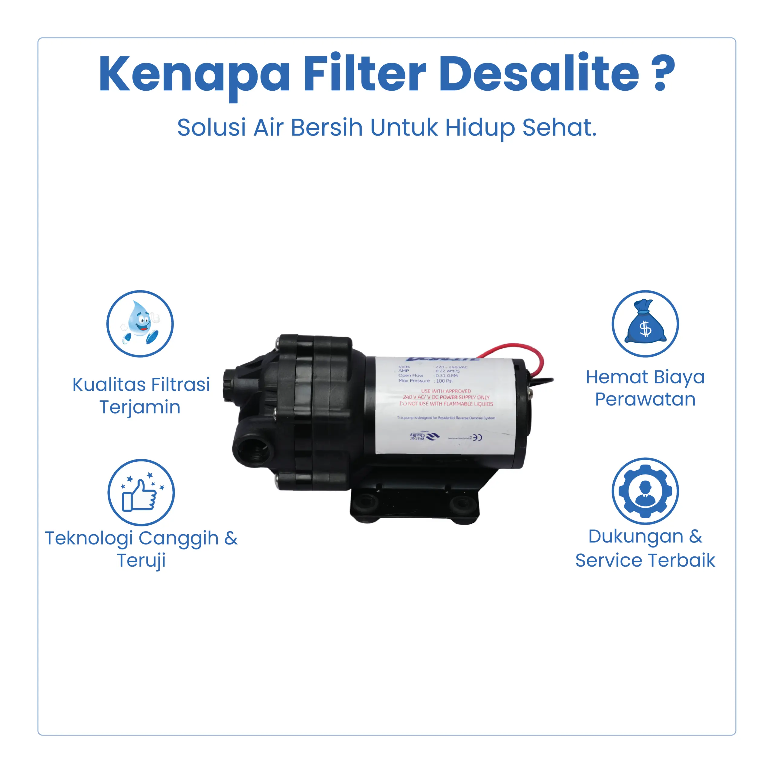 • Tegangan : 24V DC (standar mesin RO)