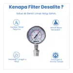 Pressure Gauge 150 PSI merupakan alat ukur tekanan air yang digunakan pada sistem Reverse Osmosis (RO) dan water treatment untuk memantau tekanan kerja sistem. Dengan pressure gauge ini, pengguna dapat memastikan tekanan air berada pada kondisi ideal sehingga kinerja membrane, pompa, dan komponen lain tetap optimal.