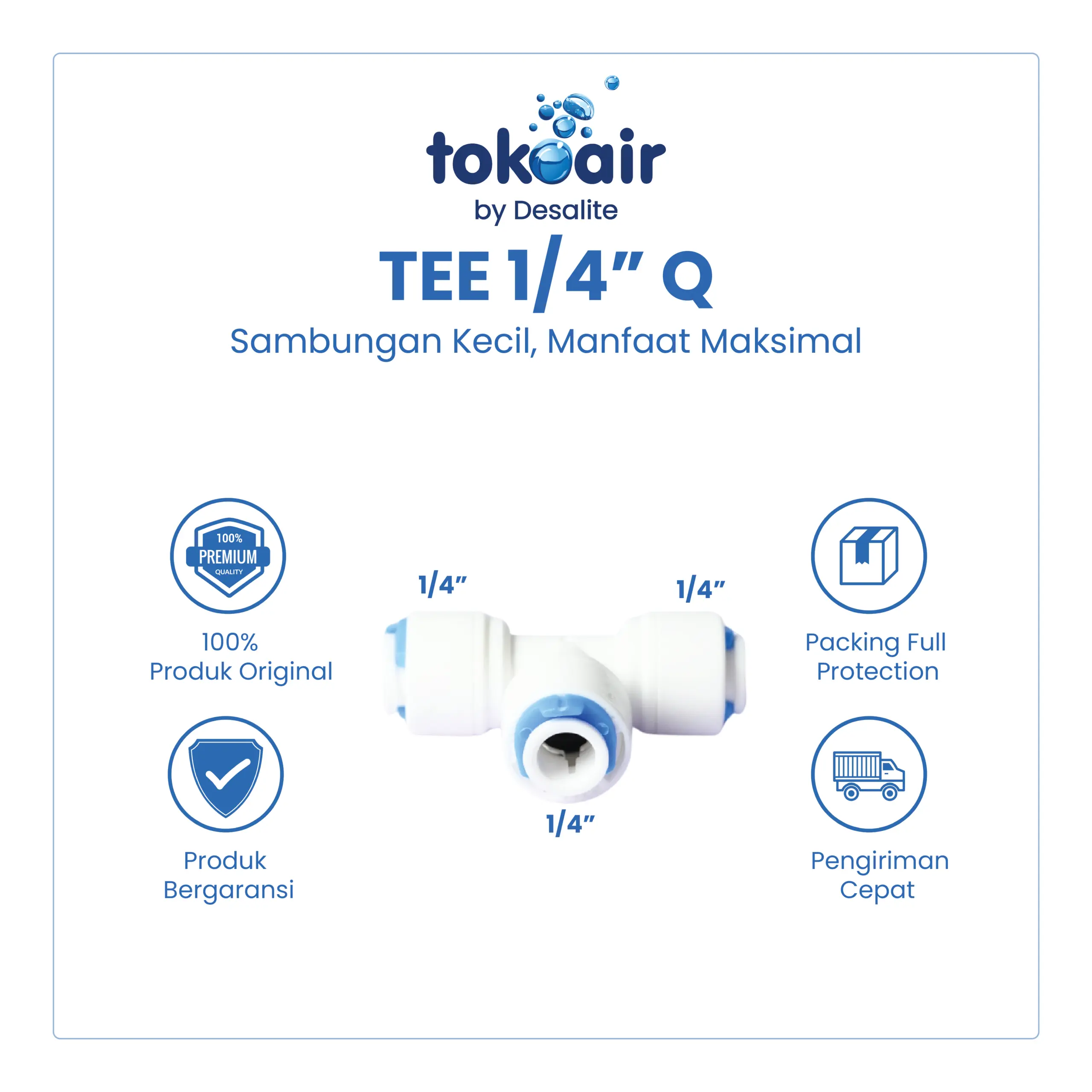 Tee 1/4” Q – Konektor Selang RO & Sistem Filtrasi